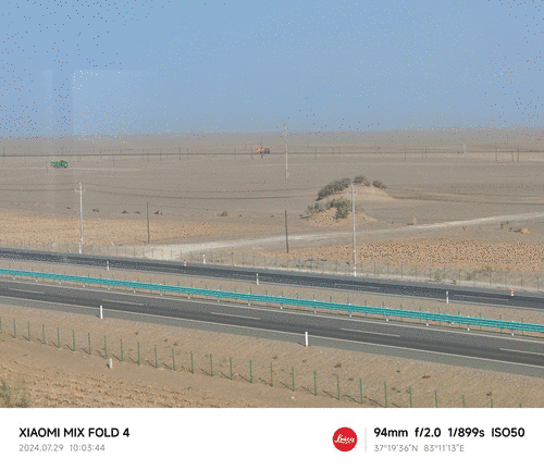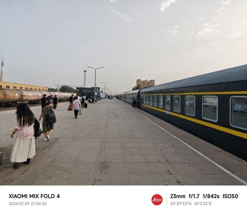 下午14:41,列车到达和田车站。若和铁路的开通结束了和田10多年的铁路尽头站历史,也使这里成为了南疆较大的铁路枢纽。当然,和田站也是一路以来见到的第一个无柱雨棚车站。在那个“跨越”的年代里,即是在祖国的西部边陲,铁路车站的建设标准也未有任何降低。此刻耳畔回响的是那熟悉的九个字“高标准、讲科学、不懈怠”,大家懂的都懂。从和田站起,列车驶入喀和铁路。喀和线沿线的村落肉眼可见的比若和线上的要富裕一些,一方面是因为这里比若和线的线位更靠近沙漠边缘,易于人类生存。另一方面,“要想富,先修路”的定律在这里仍然适用,毕竟喀和线比若和线早通车10余年。这里有沙漠中的水利灌溉设施,浇灌了村落所在的一片绿洲。也有作为新质生产力的成片的光伏基地,给这片身居内陆的土地带来了相对廉价的能源供应。可以说,这里的景色虽然荒凉,却从不缺乏生机。经过多年治理,曾经频繁与暴恐事件联系在一起的这片土地早已是一片安定祥和。车厢里的维吾尔少女们可以大方的穿着短袖短裙而不需忍受异样的眼光,刚出生40多天的小婴儿可以随着父母回到南疆村落的老家里,而我也可以作为车厢里唯一的汉族群众无所顾忌的来到这片早已神往的土地上。