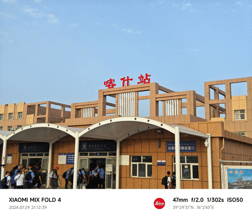 21时许,列车整点到达喀什站。此行运转1725公里,差不多相当于北京到厦门的直线距离,新疆之大可见一般。位于塔里木盆地西缘的喀什地区甚至已经过了东经80度线,位于东5区。因此,尽管时钟已经过了21点,这里天仍然大亮。我到达喀什已是7月29日,但即便是周一工作日,街道上仍然游人如织。