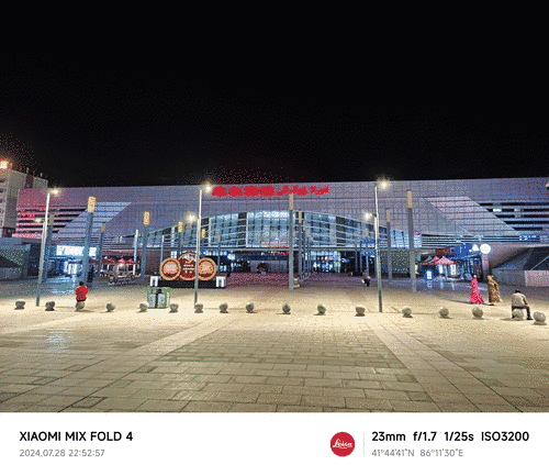 午饭后时钟已近下午15:00,困意袭来便去睡了。再次醒来已经下午18:00,看来年过30体能果然不复当年,怪不得大厂都要35岁裁员(笑。一番整理后准备外出逛逛,来到街上才发现并没有什么人。直到此时我才反应过来,这里已过了东经97.5°线,实际上位于东六区。此时差不多相当于北京的16:00,正是最热的时候。我本想前往巴州博物馆参观,但搜索后发现博物馆17:30便禁止游客进入,只好作罢。既然如此,那索性回酒店再窝一会好了。将近21:00时再出门,此时天空依然大亮,但街上的人流肉眼可见的多了不少,孔雀河两岸游人如织。我成功的在超市补充了未来一天所需的各种资源,也尝到了地道的库尔勒香梨。虽然深处西域,但这里的人们生活和东部并没有什么区别。得益于西部大开发带来的快速城镇化,如今的新疆城市也已旧貌换新颜。