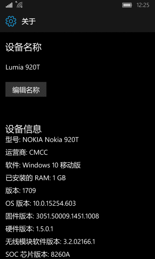 2016年,Windows 10 Mobile发布后,第一代WP8设备(即Lumia x20/x25)被全部排出在了升级范围外。然而随着WP8破解方案的公布,该代设备通过改机型的方式升级WM10成为可能。目前这台Lumia 920T已升级到WM10的最终版本10.0.15254.603。