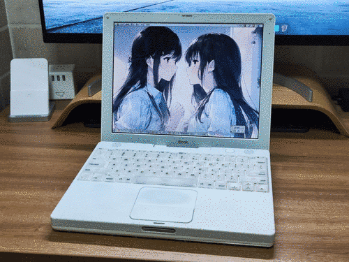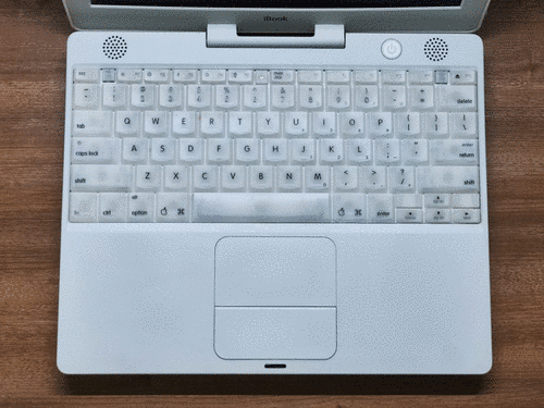 苹果的入门笔记本一直是及其特殊的存在,与一直以黑色或是铝合金甚至是钛合金示人的PowerBook相比,iBook系列通体白色和圆滑的边缘多了一分灵动和可爱,特别是对于12寸版本的iBook而言更是如此。我手头的这台iBook是这个系列的第二代产品,相比于特立独行的第一代“贝壳机”而言,这代iBook被称之为Snow确实恰如其分。而半透明的键盘也算得上是这代iBook的独有设计,虽然在经过岁月的洗礼后,透明键盘看起来总觉得有些发黄。