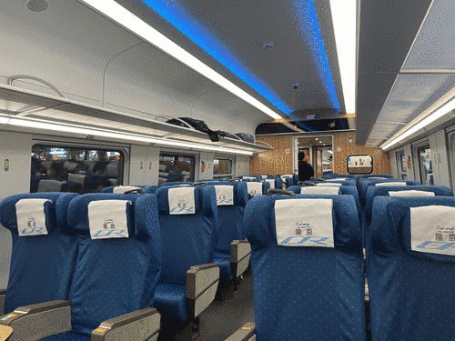 7时15分列车正点从北京南发出,从车厢内饰上看基本上就是升级版的RZ25T,座位以8排为接固定不可旋转,这就意味着永远有一半的人处于倒座模式。不过必须要说,桶一等座的乘坐体验出人意料的舒服,软硬适中且宽度足够的座椅不但超越了RZ25T,甚至比一众动力分散动车组软塌塌的座椅都更为出色,腰部支撑非常牢靠,不至于像很多动车组的座椅一样坐久了腰疼。