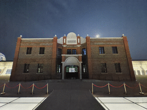 从宾馆下楼直行左转便可以来到嘉兴站北广场,直到此刻我才想起嘉兴站事实上也算得上是某种意义上的网红。由MAD事务所设计的嘉兴站改扩建工程曾在2021年建党百年时登上过微博热搜,优秀的站城一体化设计和车站广场与城市公园的无缝融合颠覆了人们对于中国火车站的认知。但由于已至深夜,我决定优先体验有轨电车,将车站细节的探访留到明天白天。从广场上穿过,一轮圆月映衬下复建的老站房显得古朴而静谧,如同回到了百年前的1921。